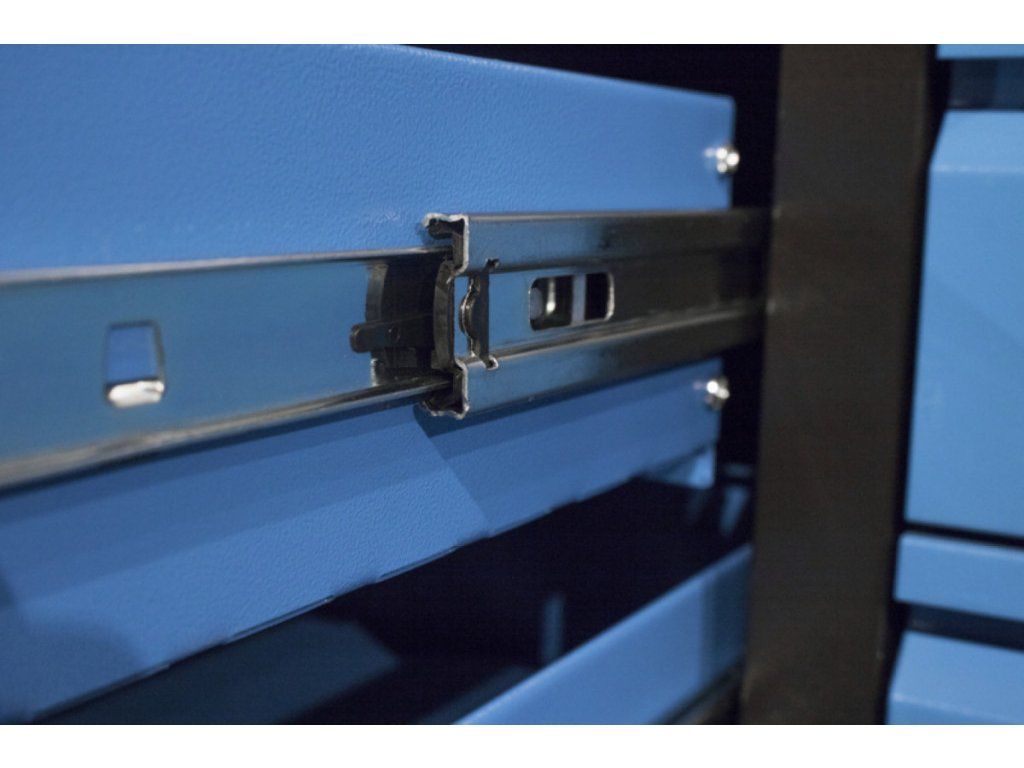 Vybavení: 6 zásuvek (d x š x v: 440 x 400 x 95 mm; max. nosnost: 25 kg, plně výsuvné - teleskopické vodicí lišty); uzamykatelná dveřová skříňka (d x š x v: 465 x 400 x 390 mm; dvířka s vnitřní výztuží a cylindrickým zámkem).