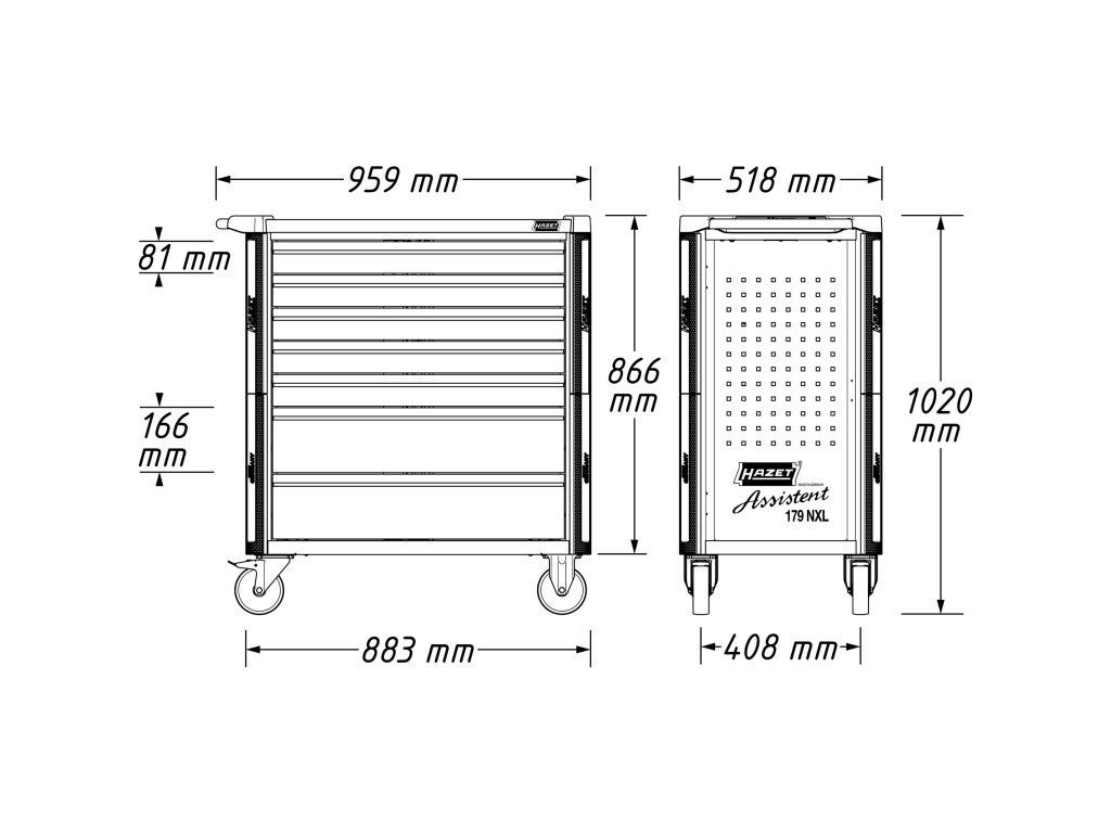 - Rozměry: 959 x 518 x 1020 mm