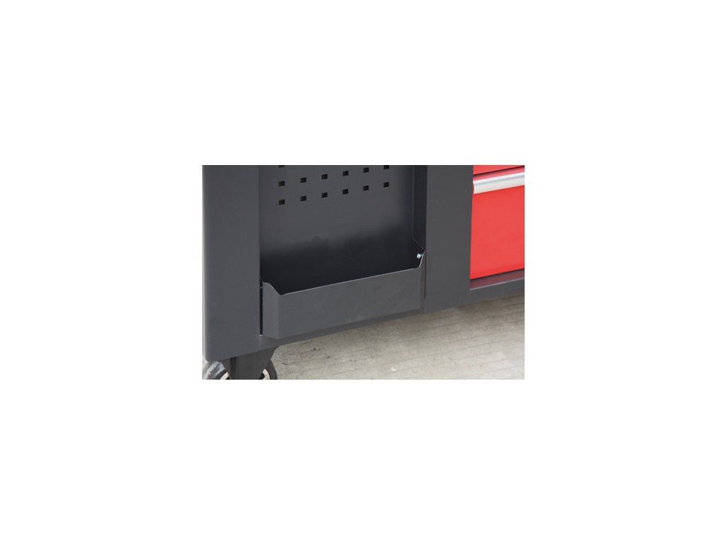 Pod děrovanou deskou je přihrádka, hodící se na různé přípravky autochemie.