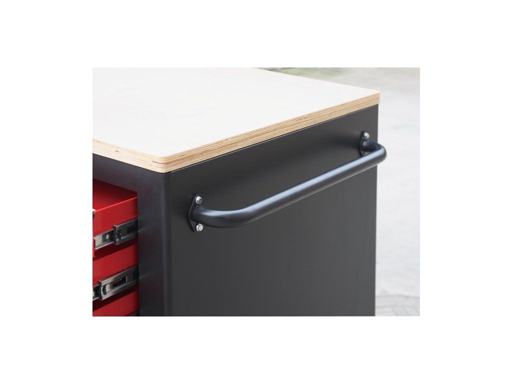 Černo-červený velký dílenský vozík s 10-ti zásuvkami o rozměrech (š x h x v): 1141 x 730 x 888 mm. Vozík je zamykatelný, má 2 pevná a 2 otočná pogumovaná kolečka a je doslova všestranný. Uskladňovací prostory má ze všech stran!