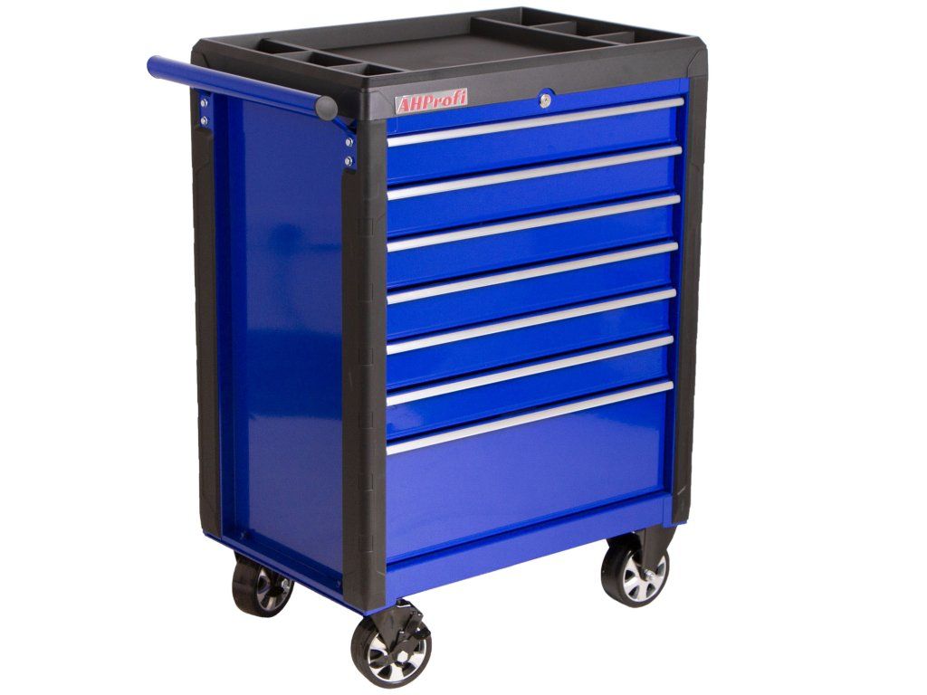 Pojízdný kovový dílenský vozík se 7 šuplíky na nářadí se bude hodit nejednomu profíkovi nebo kutilovi do jeho dílny.