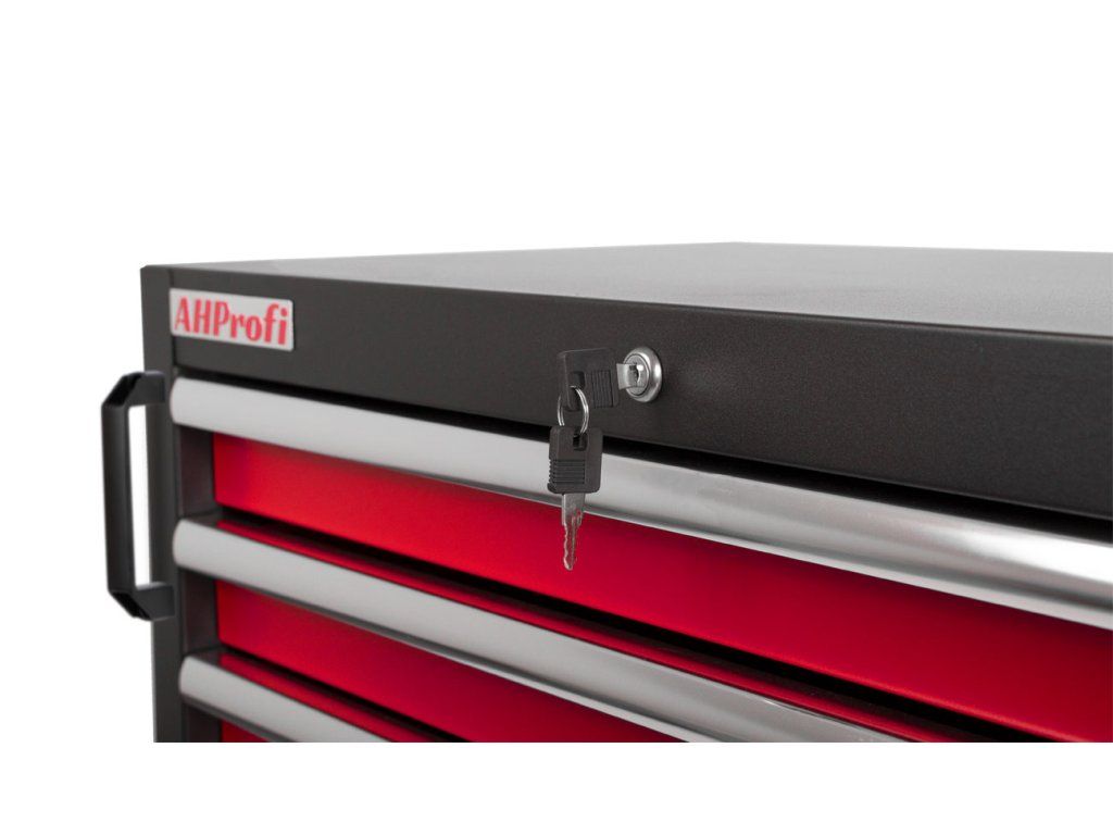 - Disponuje 7 uzamykatelnými zásuvkami pro přehledné uložení nářadí a výplní do vozíků.