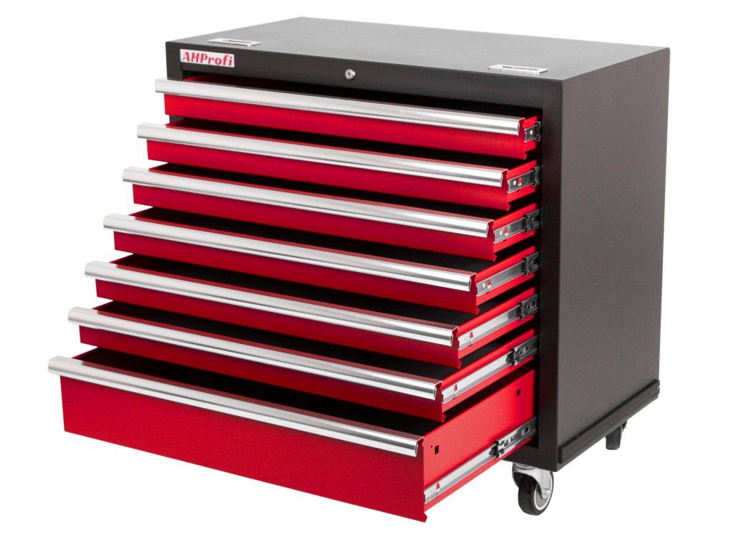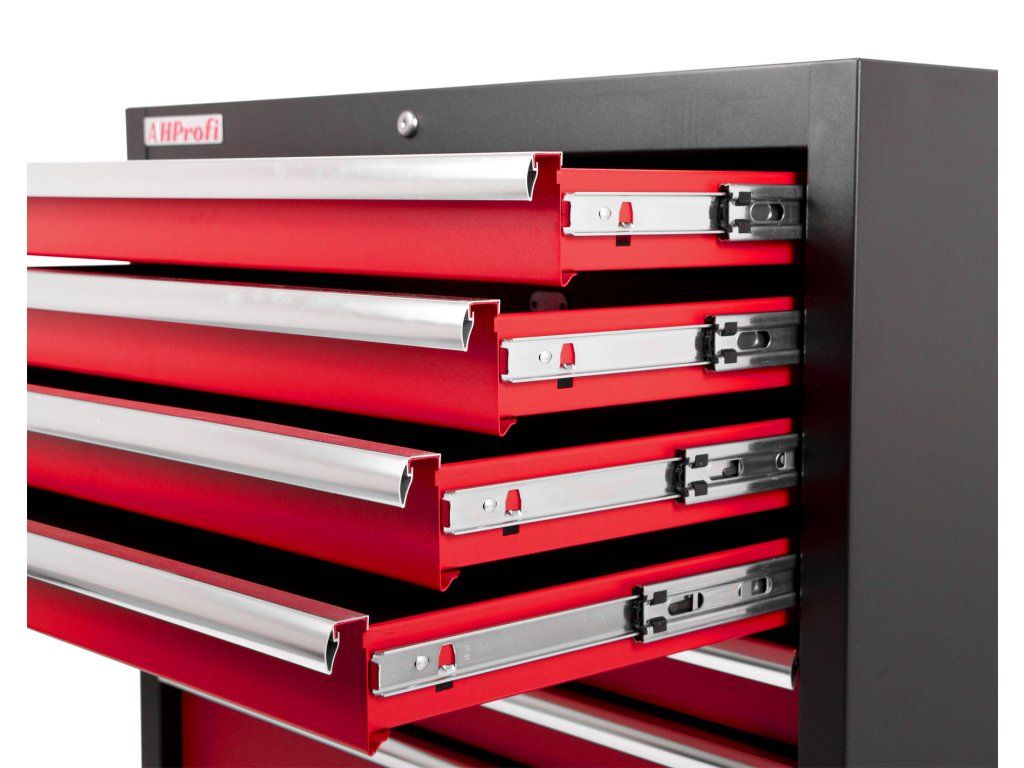 Součástí vozíku je 7 uzamykatelných zásuvek pro uložení výplní dílenského vozíku s ručním nářadím. Zásuvky jsou osazeny kuličkovými ložisky v pojezdech, čímž se zvyšuje jejich nosnost bez vlivu na výbornou vlastnost výjíždění/zajíždění.