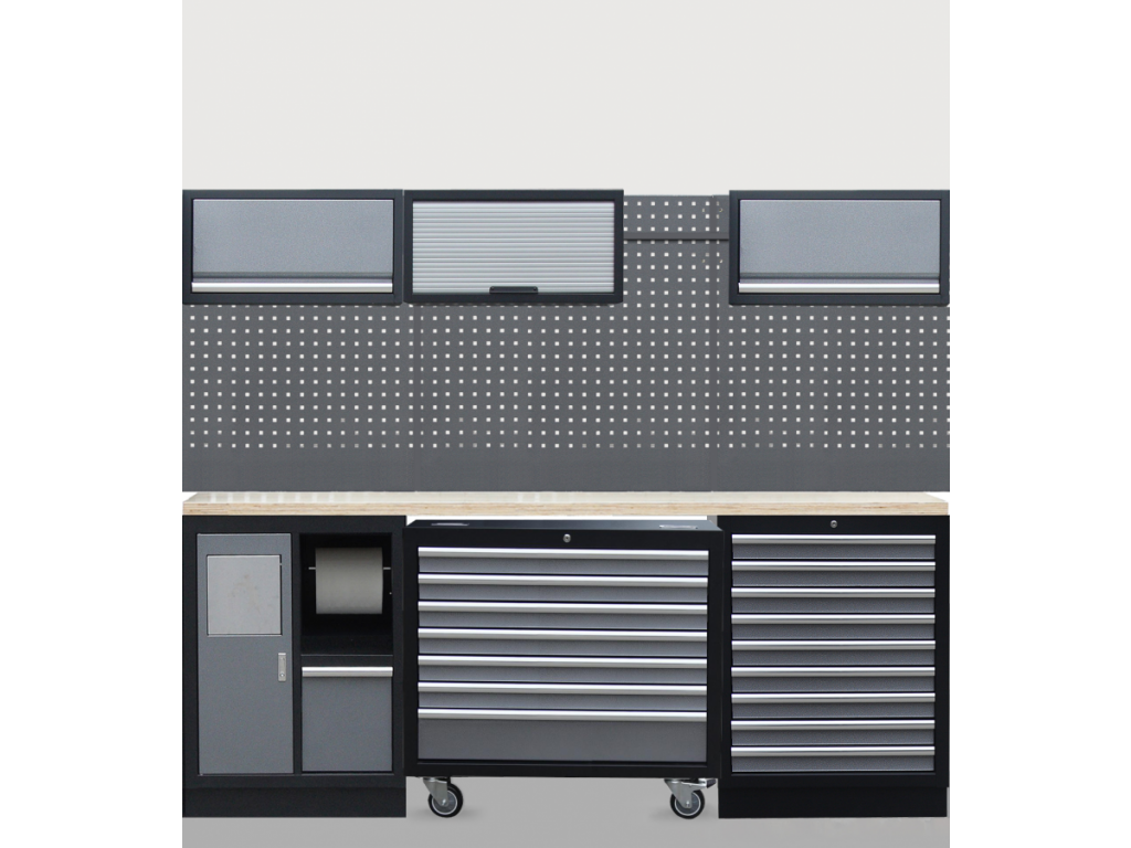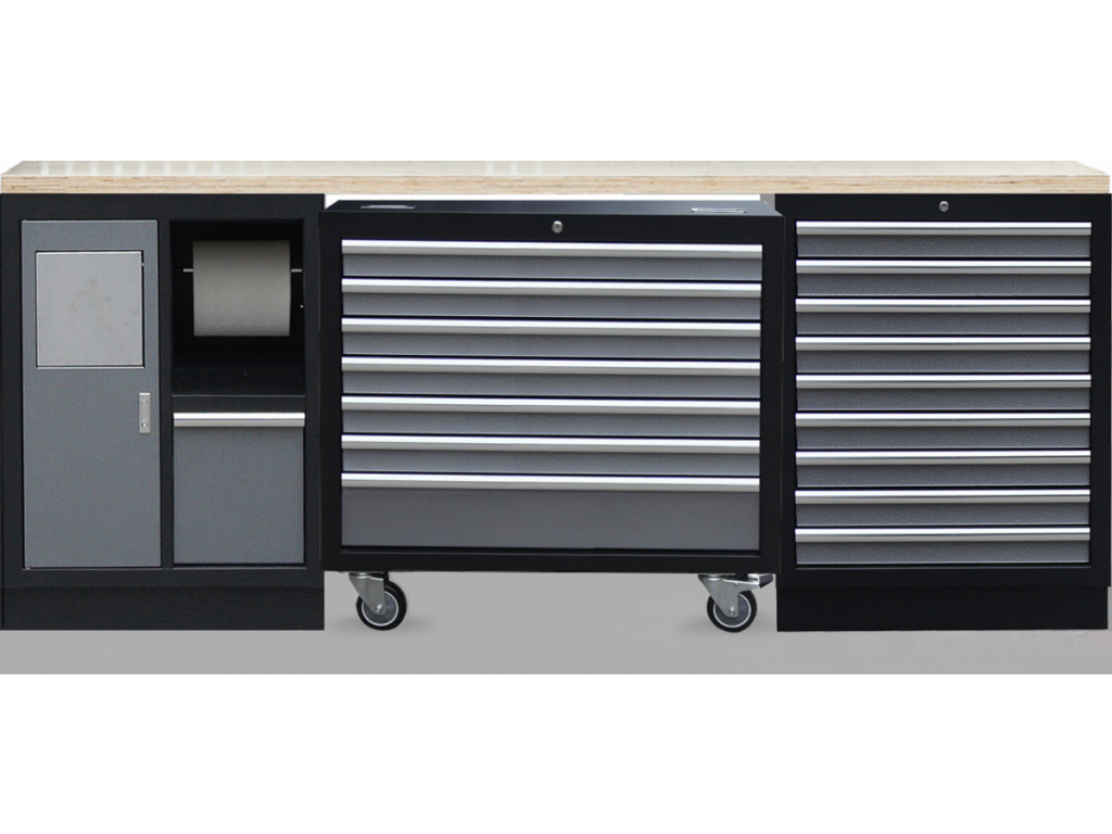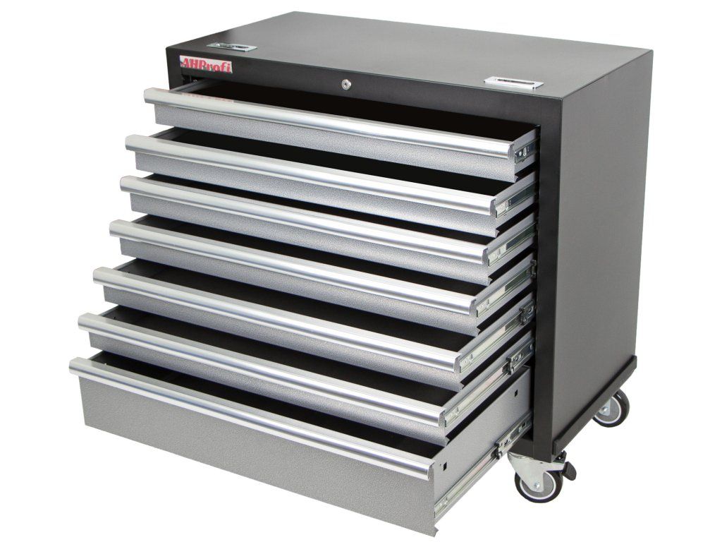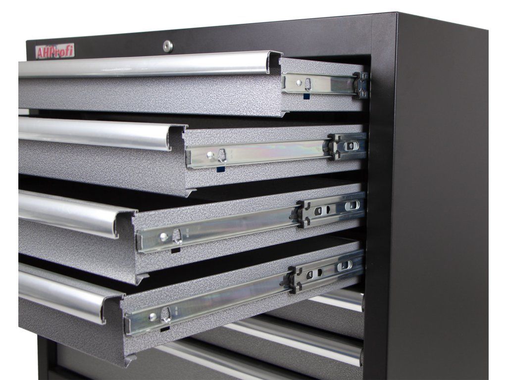 Součástí vozíku je 7 uzamykatelných zásuvek pro uložení výplní dílenského vozíku s ručním nářadím. Zásuvky jsou osazeny kuličkovými ložisky v pojezdech, čímž se zvyšuje jejich nosnost bez vlivu na výbornou vlastnost výjíždění/zajíždění.