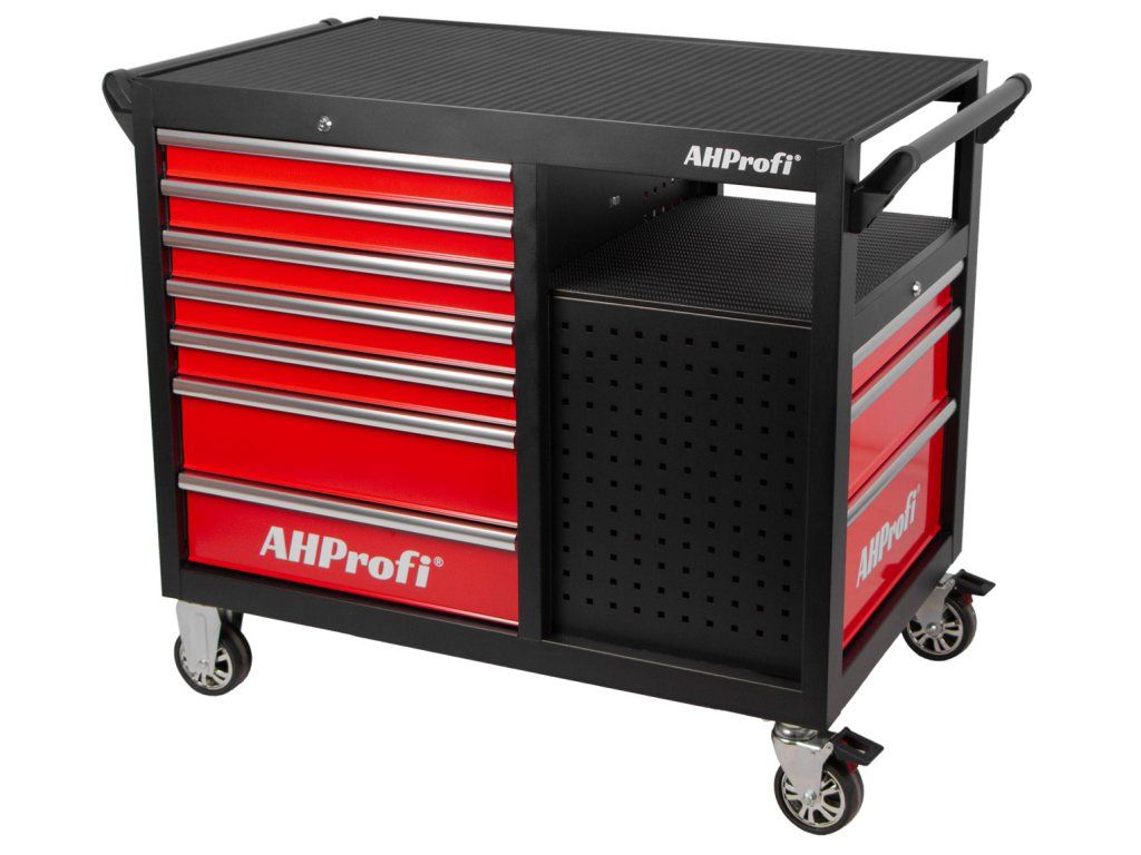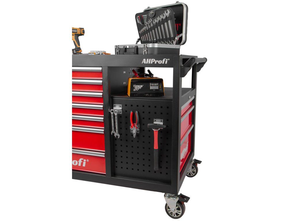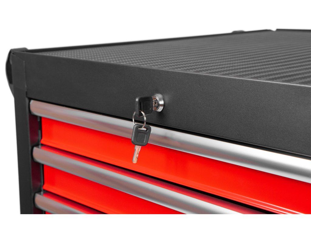 Vozík disponuje 7 zásuvkami různých velikostí, což umožňuje přehledné uspořádání nářadí:
