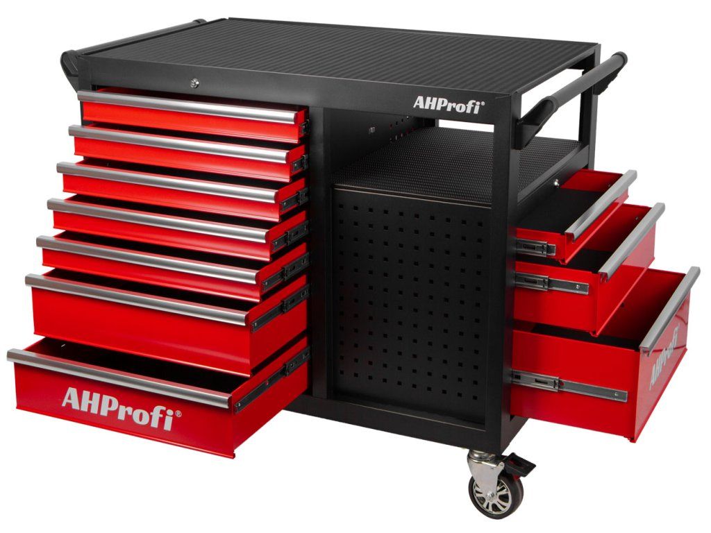 Tento pojízdný kovový dílenský vozík se 10 šuplíky na nářadí, s celkovými rozměry (š x h x v) 1123 mm x 730 mm x 844 mm (bez koleček), nabízí dostatek úložného prostoru i pro náročné uživatele.