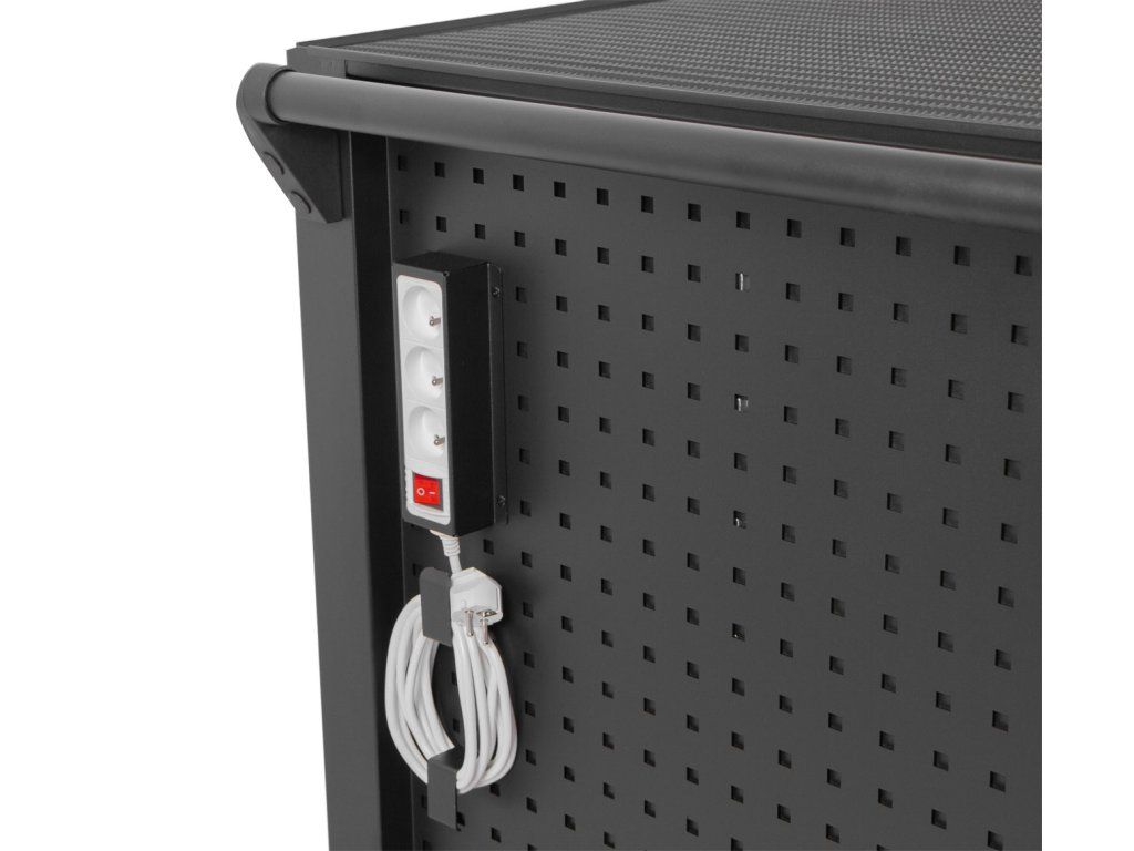 Po 3 stranách vozíku se nacházejí perforované panely, které umožňují zavěšení dalšího nářadí, pomocí různých druhů háčků.