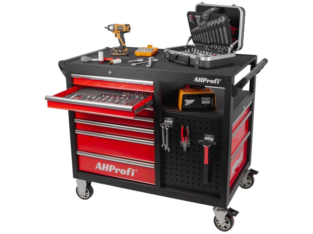 Dílenský vozík s nářadím, 360°, 10 zásuvek, 238 ks - AH450101BAL