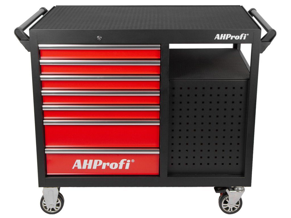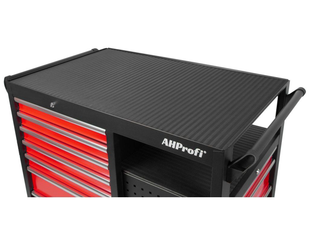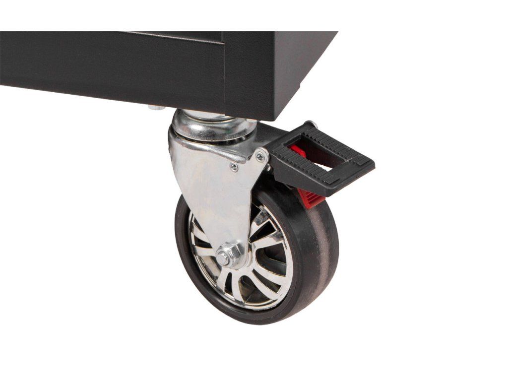 Široká konstrukce vozíku s množstvím úložného prostoru s celkem 10 šuplíky a policemi na nářadí. S celkovými rozměry (š x h x v) 1123 mm x 730 mm x 844 mm (bez koleček), nabízí vozík dostatek úložného prostoru i pro náročné uživatele.