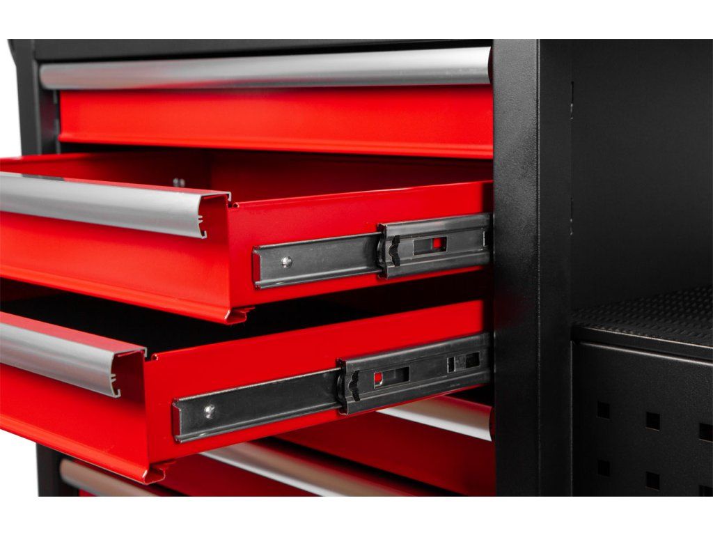 Vozík disponuje 10 zásuvkami různých velikostí, což umožňuje přehledné uspořádání nářadí: