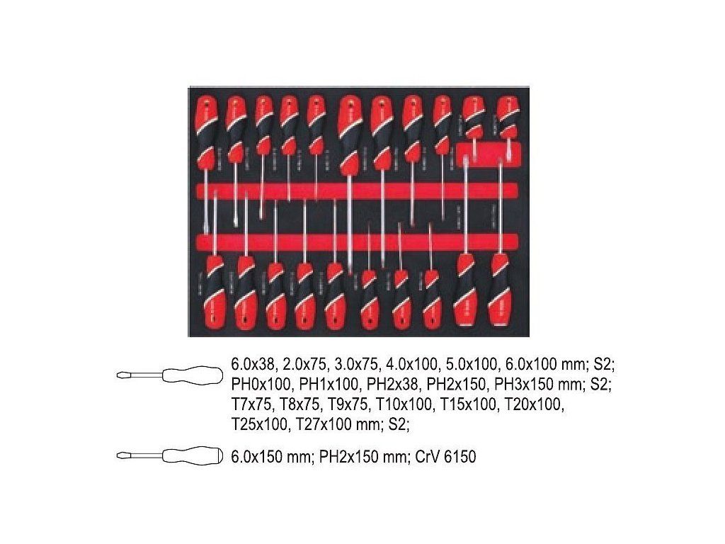 - Šroubováky TORX: T7x75, T8x75, T9x75, T10x100, T15x100, T20x100, T25x100, T27x100mm