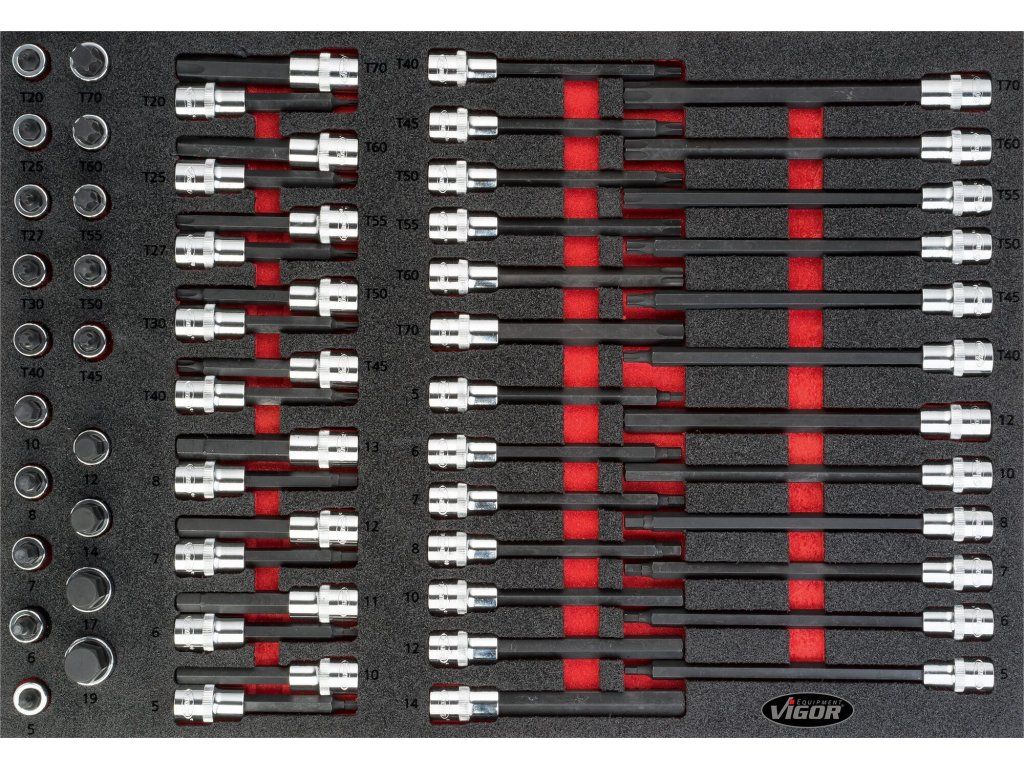 Sortiment nástrčných hlavic TORX® a HEX 1/2", 62 dílů