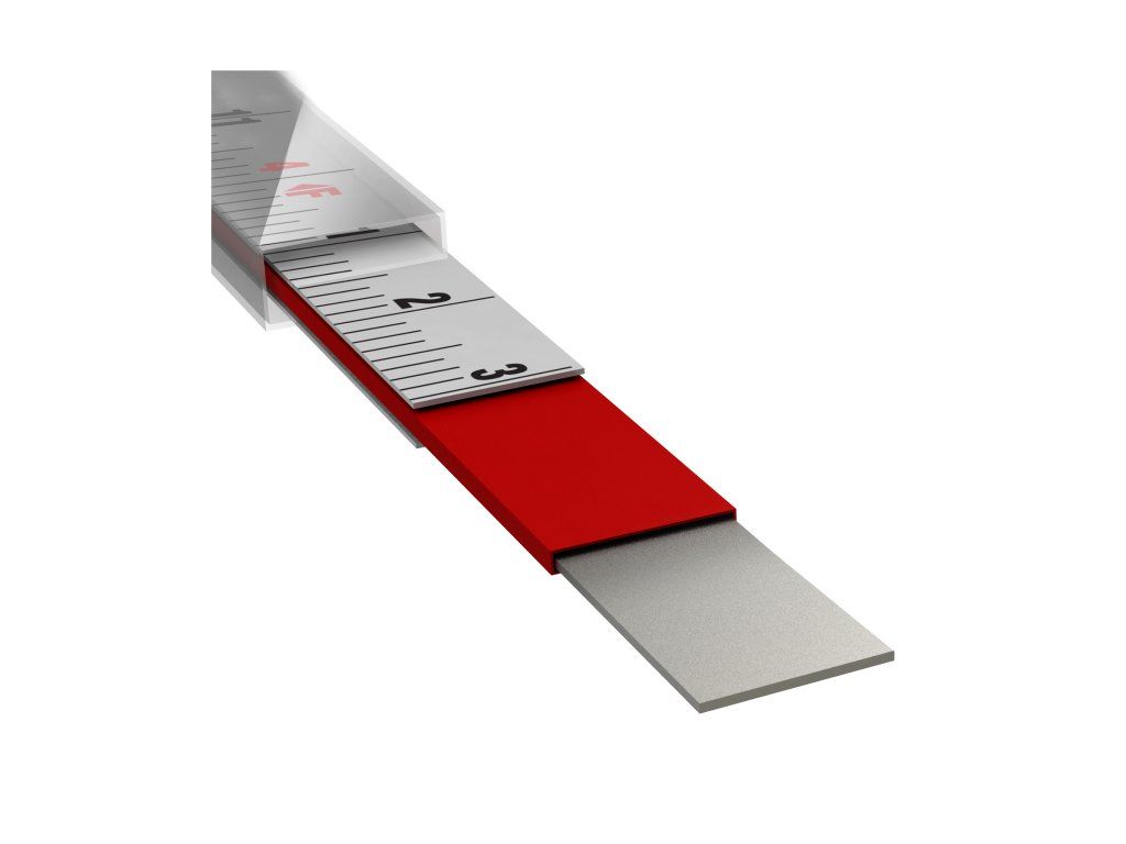 - Oboustranný potisk stupnice. Metrické jednotky na horní straně pásma, imperiální míry (palce a stopy) na spodní straně