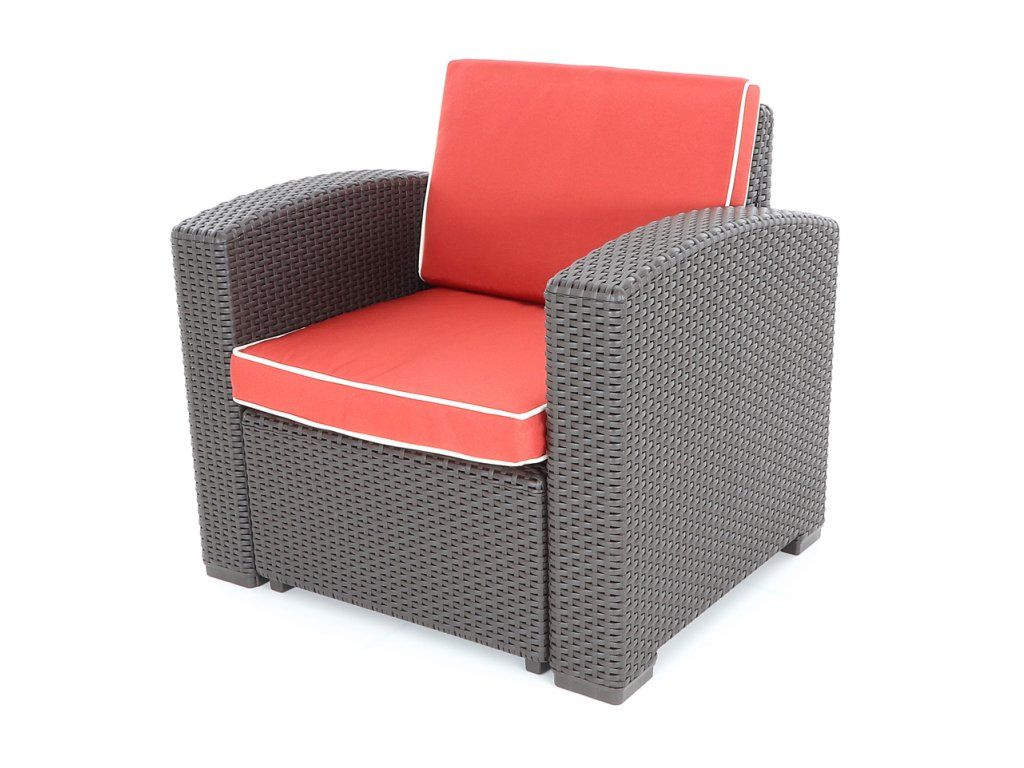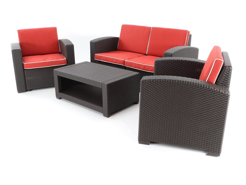 Nábytek má originální povrchovou strukturu napodobující přírodní ratan. Ideální pro pohodlné venkovní posezení na vaší zahradě či terase.