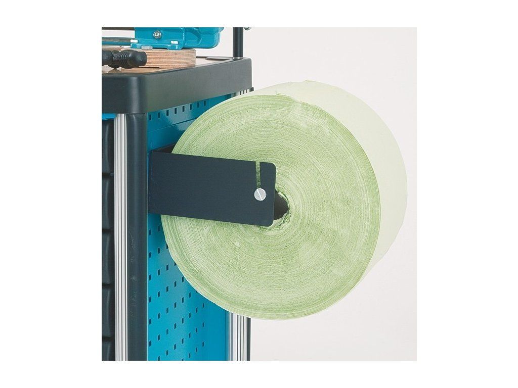 Držák papírové role je určen pro děrované desky s roztečí 38 x 38 mm. Připevněním na perforovaný panel lze rozšířit úložný prostor také pro sestavy dílenského nábytku, dílenské vozíky s nářadím i bez nářadí, pracovní stoly i policové regály.