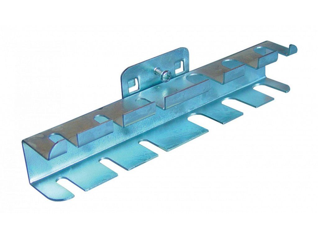 Držák 6 ks šroubováků dlouhý 200 mm je určen pro děrované desky s roztečí 38 x 38 mm. Připevněním na perforovaný panel lze rozšířit úložný prostor také pro sestavy dílenského nábytku, dílenské vozíky s nářadím i bez nářadí, pracovní stoly i policové regály.
