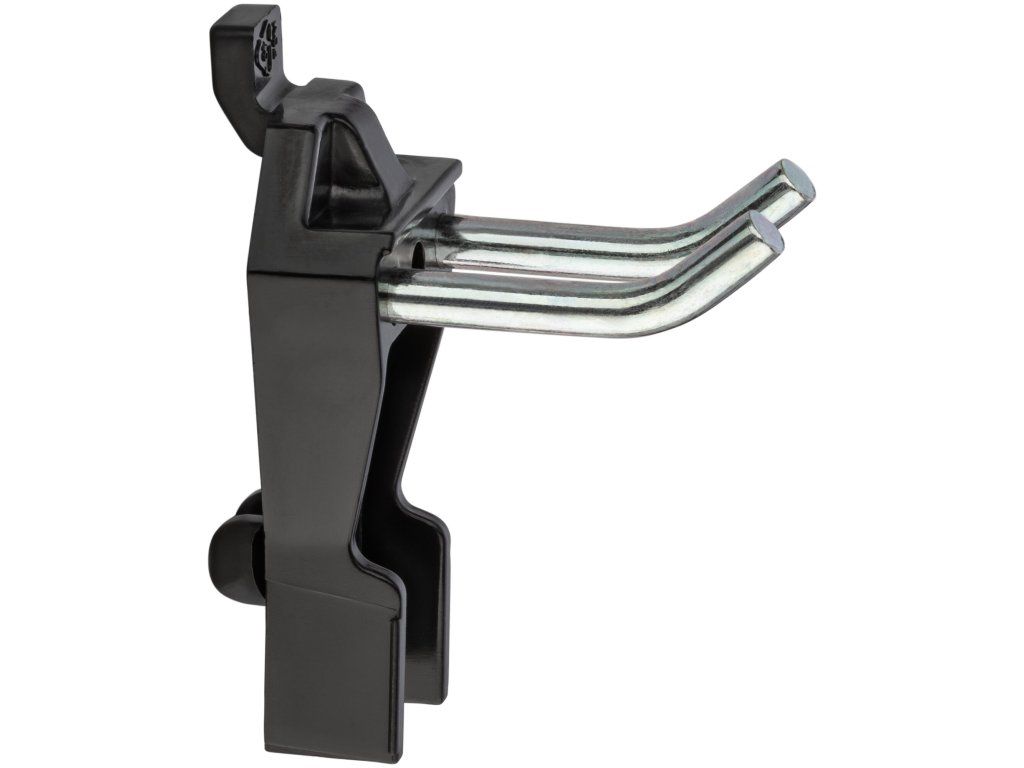 Dvojitý hák dlouhý 30 mm je určen pro děrované desky s roztečí 38 x 38 mm. Připevněním na perforovaný panel lze rozšířit úložný prostor také pro sestavy dílenského nábytku, dílenské vozíky s nářadím i bez nářadí, pracovní stoly i policové regály.