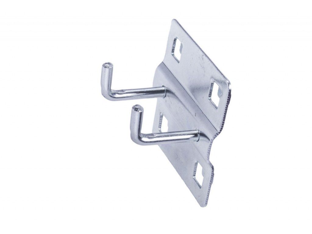 Dvojitý hák dlouhý 35 mm je určen pro děrované desky s roztečí 38 x 38 mm. Připevněním na perforovaný panel lze rozšířit úložný prostor také pro sestavy dílenského nábytku, dílenské vozíky s nářadím i bez nářadí, pracovní stoly i policové regály.