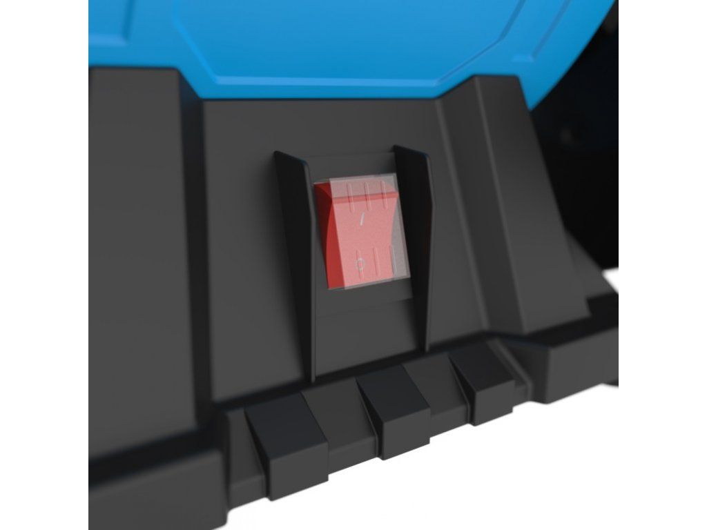 Konstrukce: vylehčená kovová skříň, nastavitelné opěrky obrobku, ochranné kryty proti jiskrám, robustní podstavec (vč. otvorů pro montáž na pracovní desku).