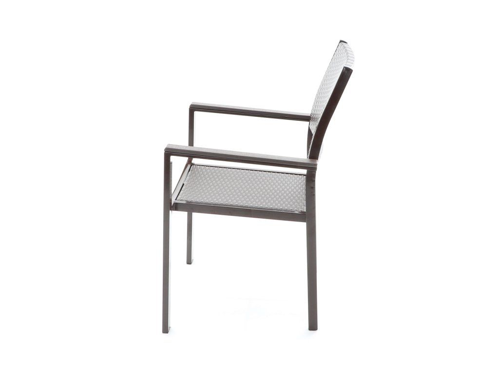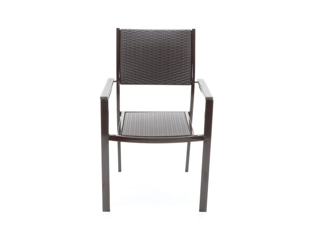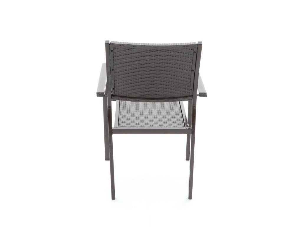 Židle ze stolové sestavy Elba set je z ocelových profilů. Čalounění je v imitaci umělého ratanu z lisovaného plastu s UV filtrem.