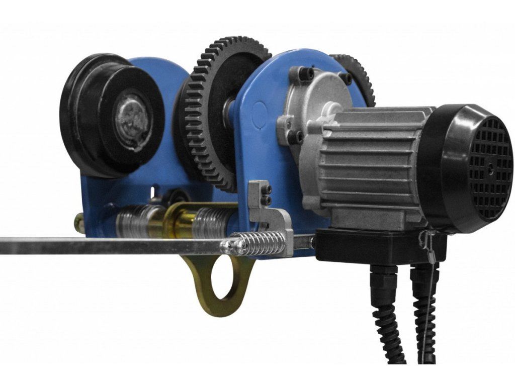Elektrická jeřábová kočka, určená k horizontálnímu přesouvání řetězových kladkostrojů/lanových zvedáků se zavěšenými břemeny