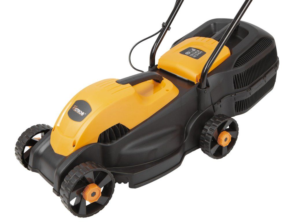 Elektrická zahradní sekačka od značky Hoteche určena především na malé travnaté plochy. |