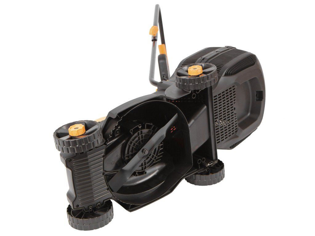 Možnost nastavení výšky sečení přešroubováním koleček. Nastavení výšky na 26, 41 a 56 mm. |