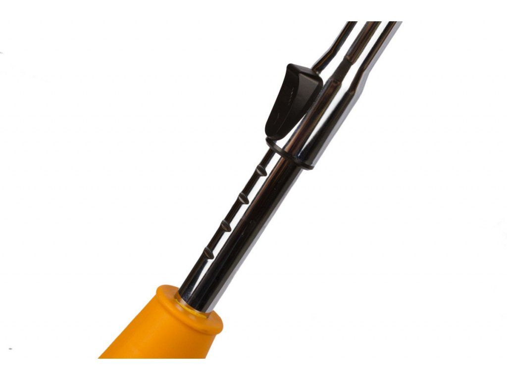 Teleskopická konstrukce strunové sekačky umožňuje přizpůsobení její délky potřebám vaší výšky v rozsahu 95 až 115 cm. O vyšší komfort se postará také polohovatelná přídavná rukojeť.