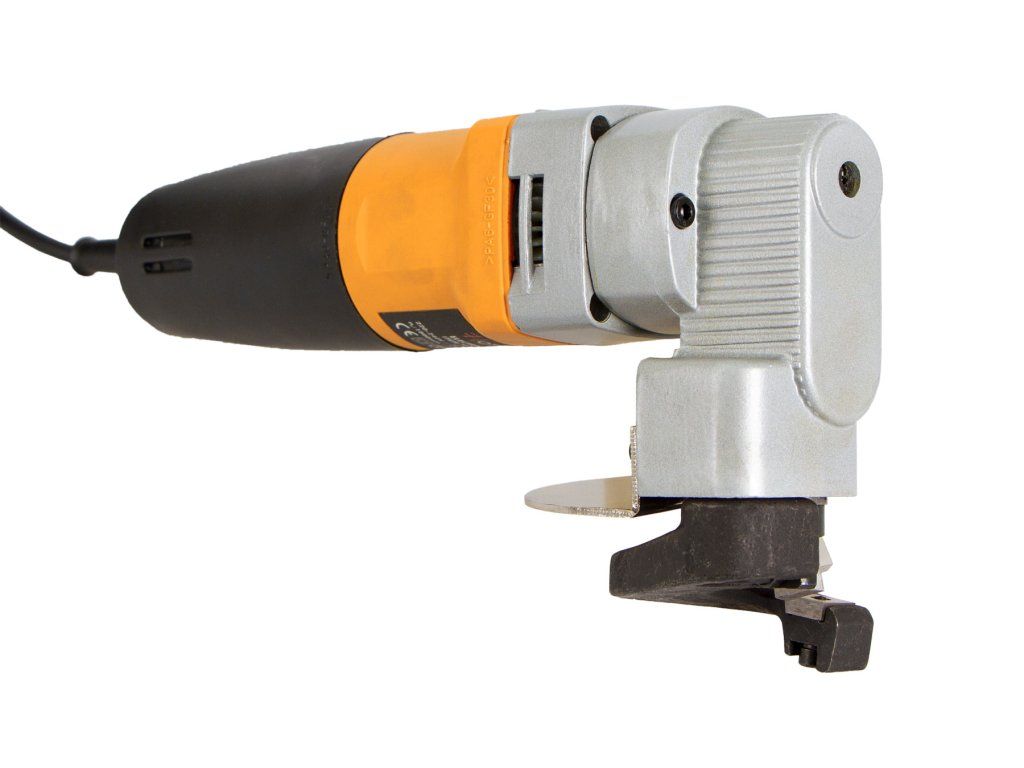 Silné a kompaktní elektrické nůžky na plech od značky Hoteche s příkonem 500 W dokážou řezat/stříhat plech o šířce až 2,5 mm.