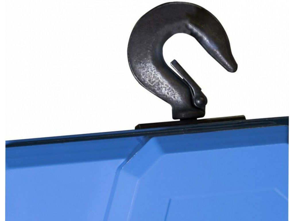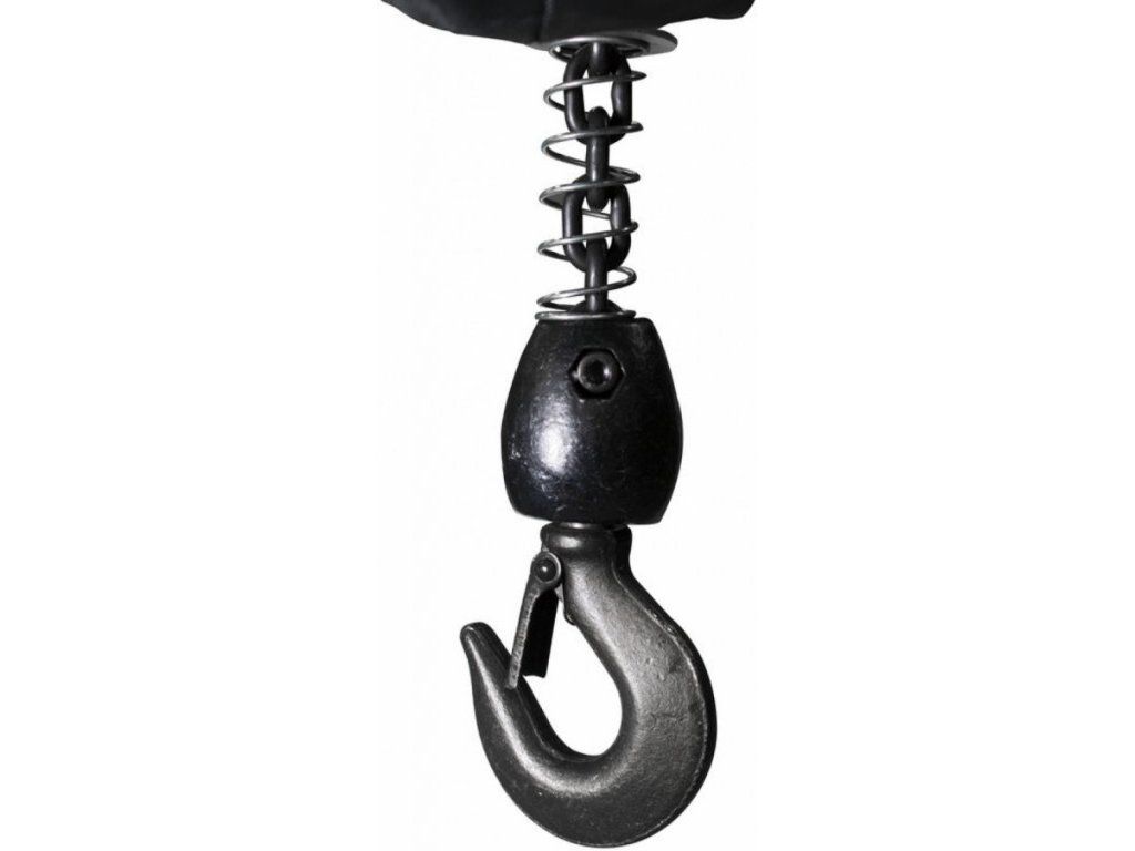 Konstrukce: koncový spínač, nouzový vypínač, zásobník řetězu, závěsný i upevňovací hák vč. bezpečnostní pojistky.
