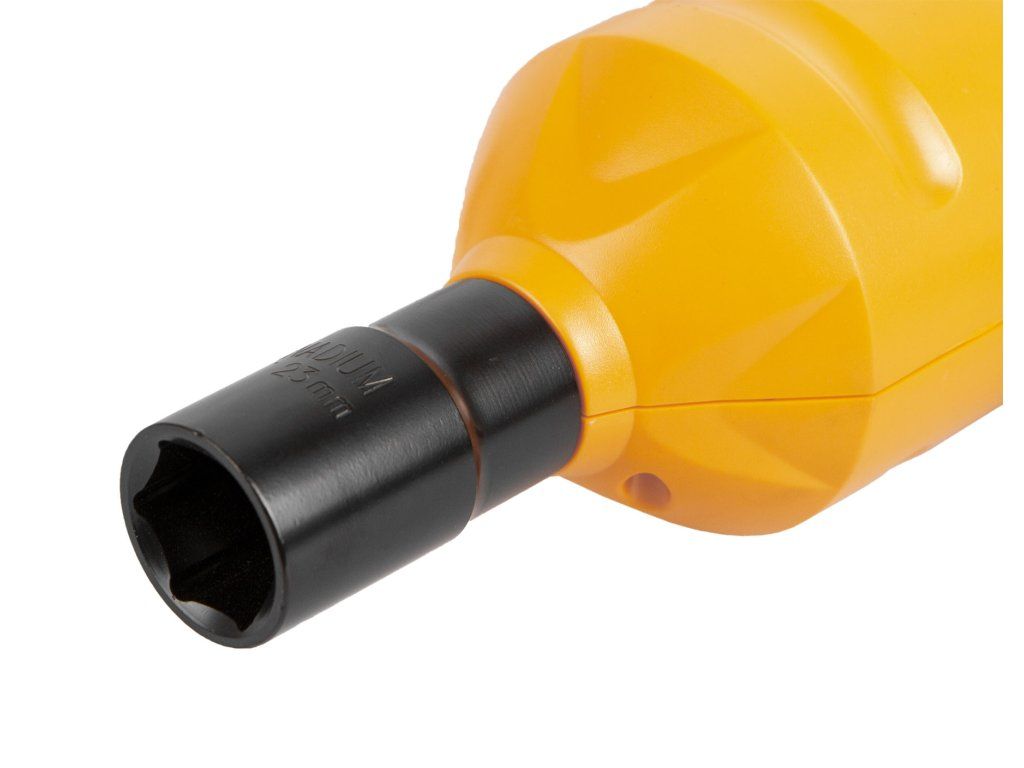 V sadě mimo samotného utahováku také naleznete oboustranné nástrčné klíče o velikostech 17/19 a 21/23 mm.