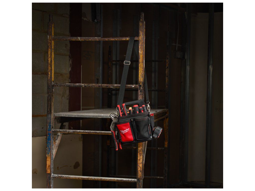 - Integrované pásky: umožňují nosit brašnu na pásku na nářadí.