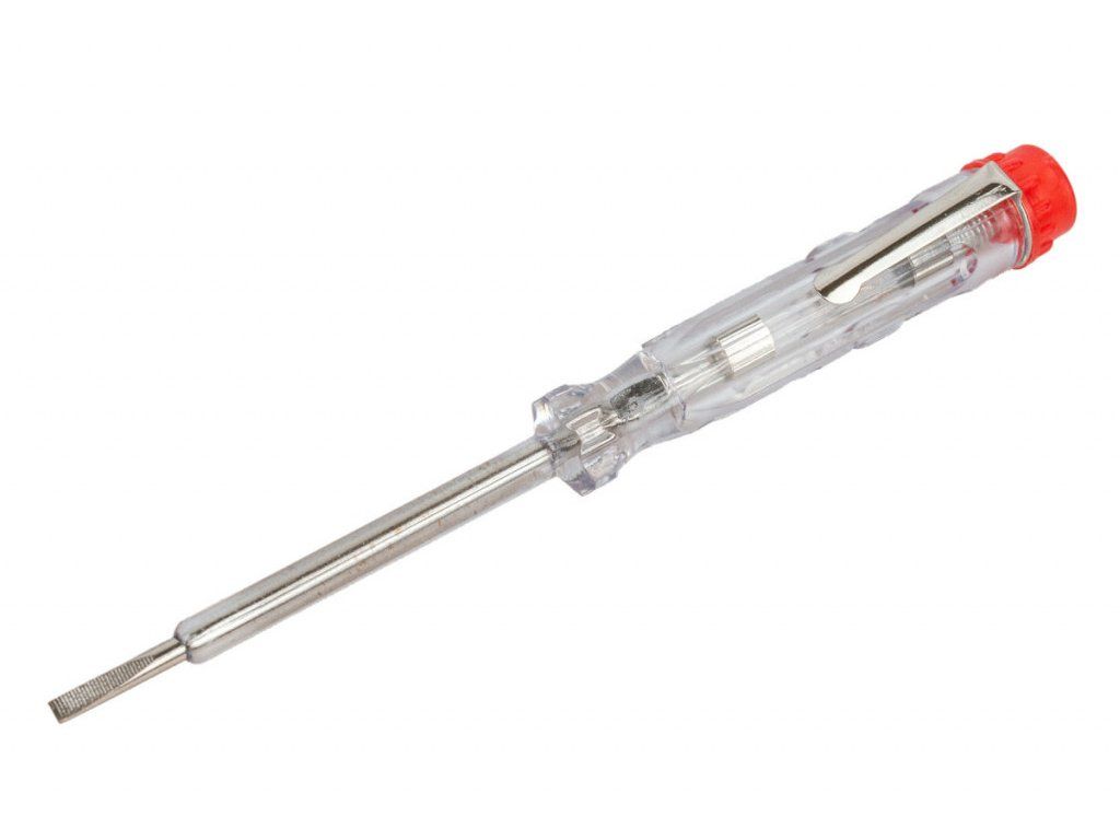 Součástí sady je také zkoušečka napětí 100–250 V; celý set je přehledně uložen v plastovém kufříku.