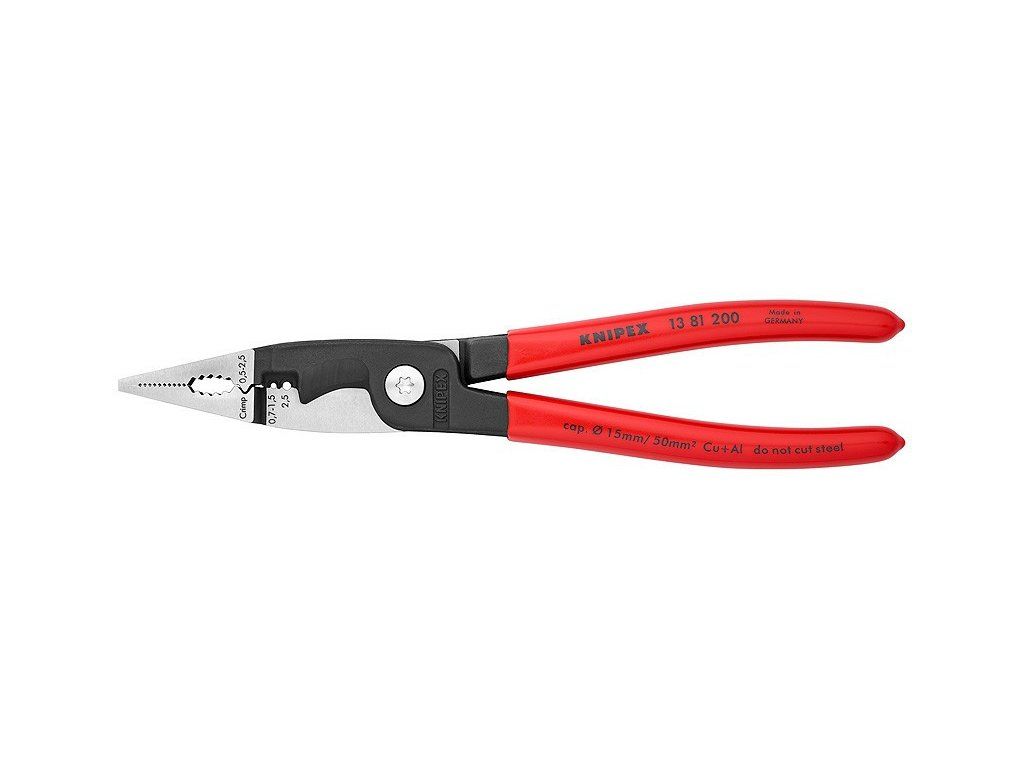 - Multifunkční kleště pro elektroinstalace- na uchopování plochého i kulatého materiálu, ohýbání, odstranění otřepu, štípání kabelů, odizolování a krimpování koncových dutinek