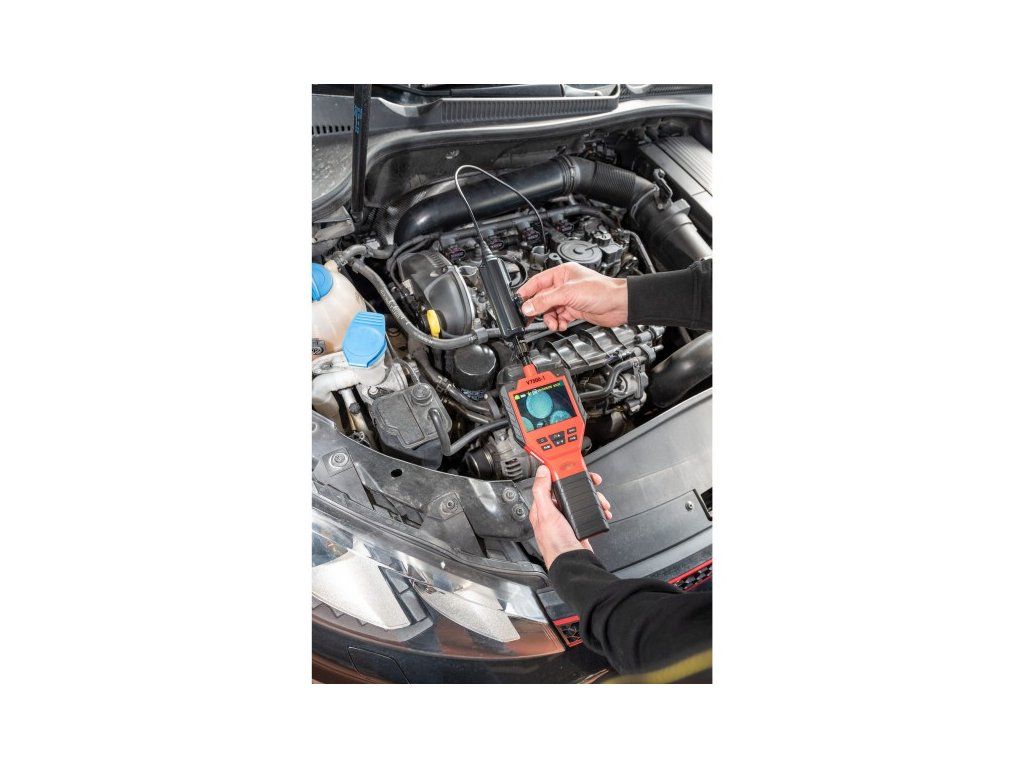 Profesionální inspekční videoendoskop s bateriovým napájením je ideálním nástrojem pro zkoumání poškození a stavu nejrůznějších součástek ve špatně přístupných místech např. v motorovém prostoru.