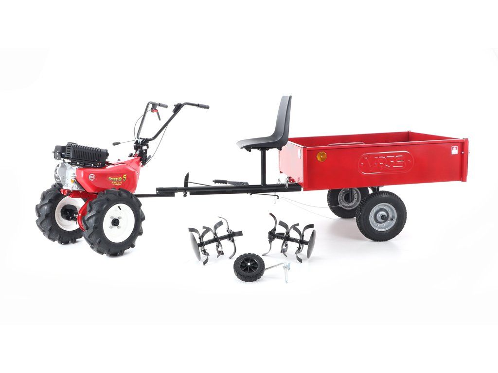 EURO5 EVO 2+1 je dokonalým nástrojem k „rozmělnění“ půdy, odplevelení zeleninové zahrady, orání, vyorávání brambor a v neposlední řadě i výborným pomocníkem v podobě malotraktoru s vozíkem.