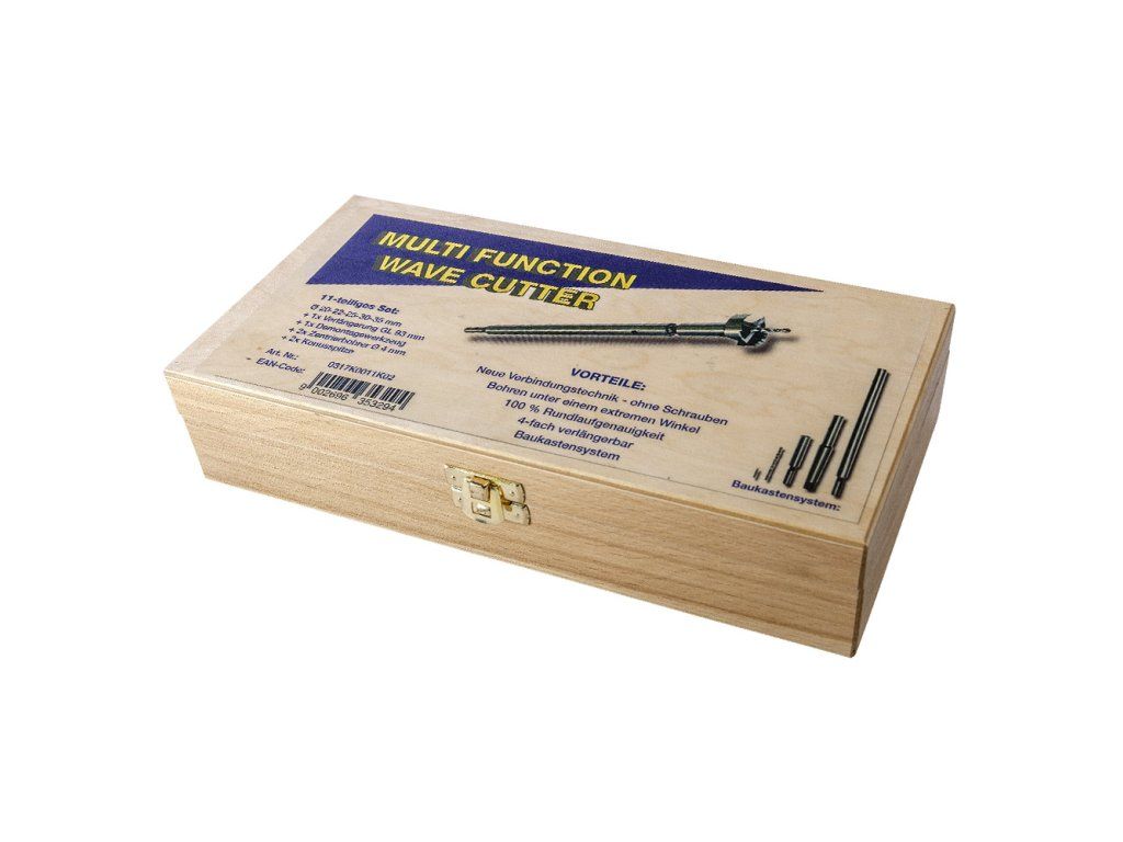 Multi-Wave Forstnerův sukovník je vylepšená verze Wave sukovníku doplněná o nastavitelný středový vrták. Vhodný pro ploché otvory, šikmé i boční ruční vrtání. Dokonale a lehce vrtá v měkkém i tvrdém dřevě. Vytváří otvory s čistým dnem a hladkými stěnami. Díky obvodovému břitu s patentovaným zvlněným ostřím je minimalizováno tření, vytrhávání vláken a také přehřátí nástroje. Nastavitelný vodící hrot nebo středový vrták přesně vede sukovník i při vrtání pod úhlem.