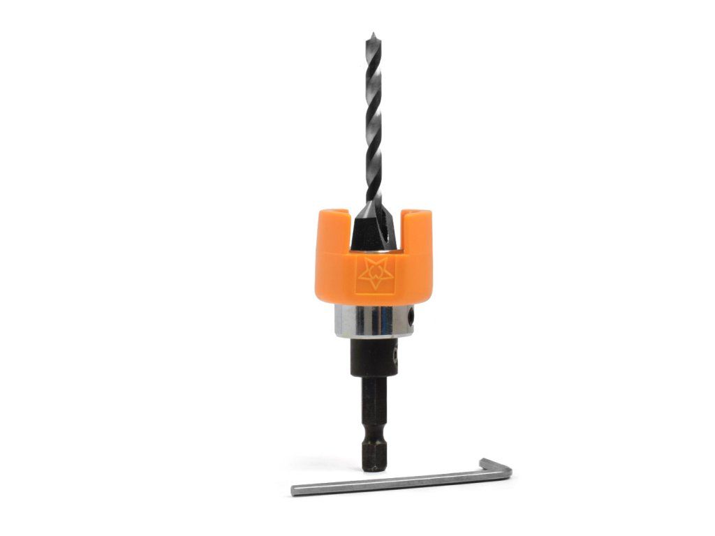 Záhlubník se skládá ze čtyř částí, rychloupínací stopky, nastavitelného vrtáku dřeva pro centrické předvrtání otvorů, vysoce kvalitního záhlubníku a nastavitelného dorazu pro seřízení hloubky zahloubení. Při dosažení nastavené hloubky vrtání se plastový doraz zastaví o vrtaný materiál a nedojde tak k poškrábání materiálu.