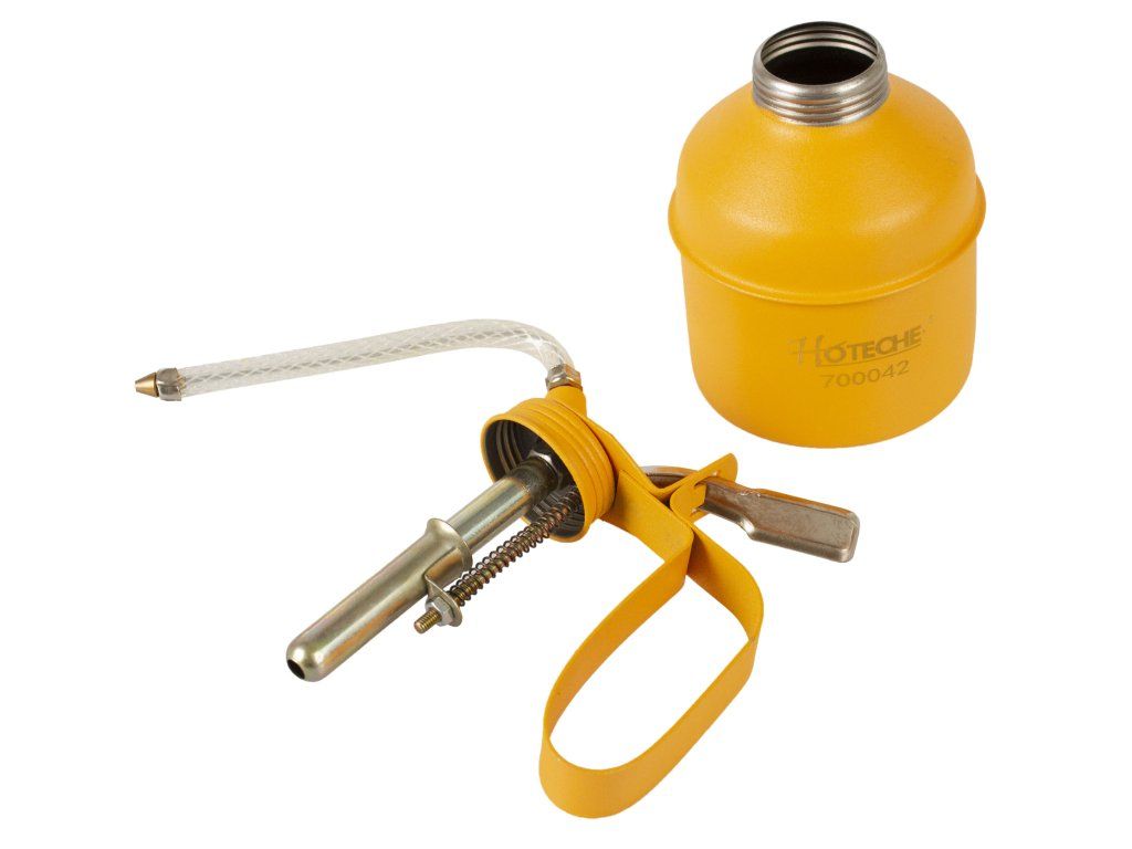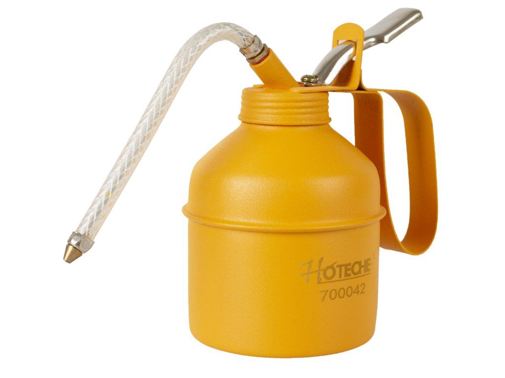 Kovová olejnička s flexibilním aplikátorem.