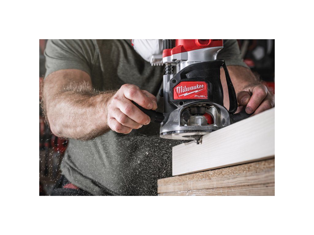 - Fréza pro srážení hran se dvěma vyměnitelnými tvrdokovovými břity. Se spodním ložiskem pro samonavádění, bez nutnosti použití šablony.