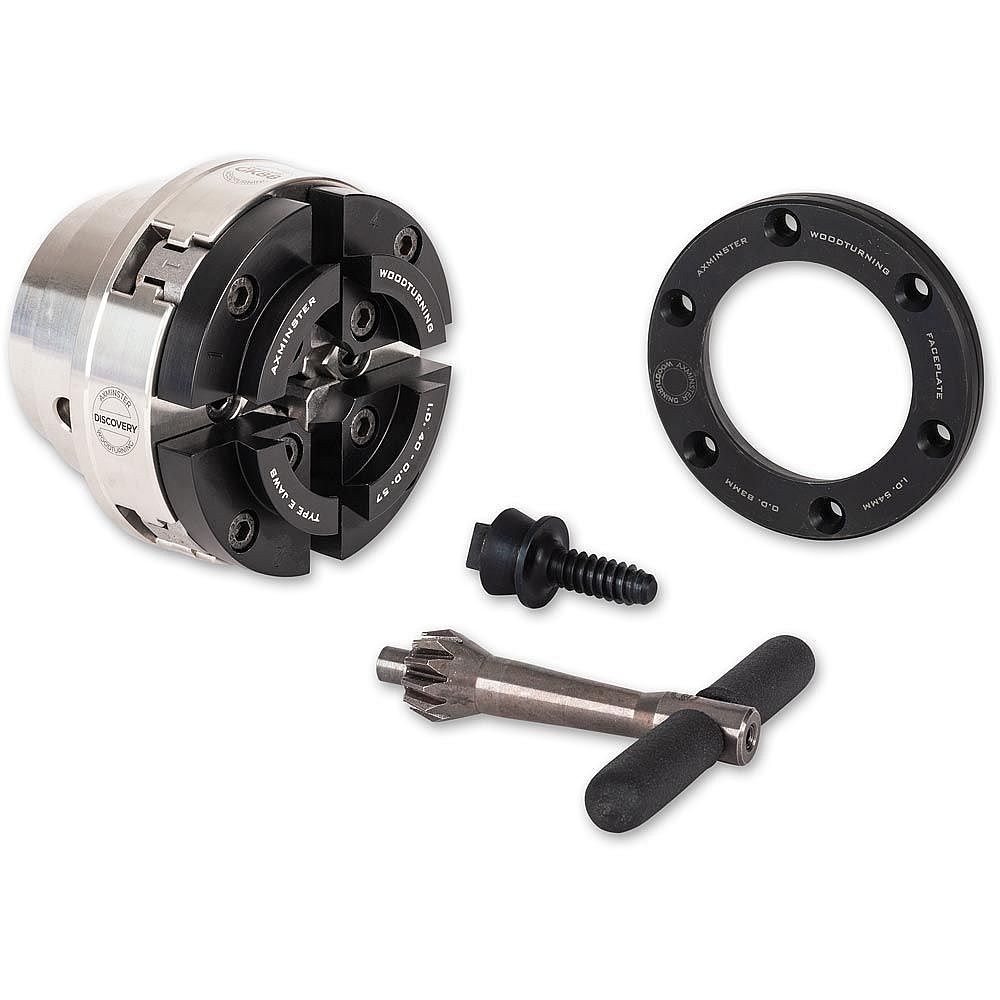 Sada sklíčidla Axminster GK88 je ideálním volbou pro každého, kdo chce začít se soustružením dřeva. Obsahuje všechny základní nástroje potřebné pro upínání obrobků na soustruhu. Sada zahrnuje sklíčidlo Axminster GK88, rybinové upínací čelisti (Typ E), upínací kroužek, unašecí šroubový hrot, kličku ke sklíčidlu a vyměnitelnou montážní desku.