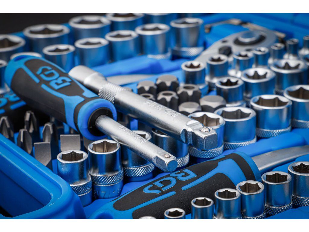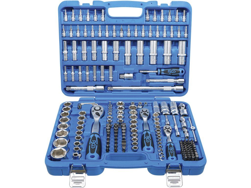 Kvalitní gola sada 1/4", 3/8", 1/2" obsahuje ráčny, palcové šestihranné nástrčné klíče, bity a další.