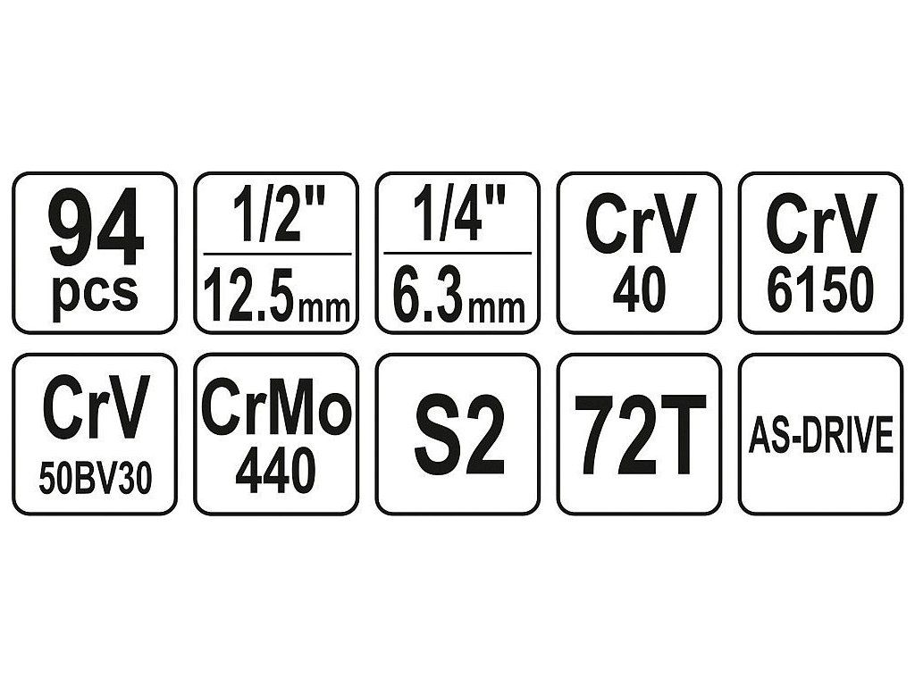 Gola sada 1/4" a 1/2", 94 ks - YT-12681