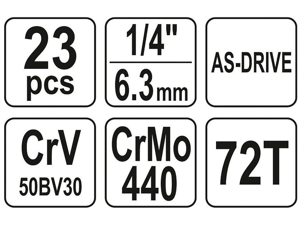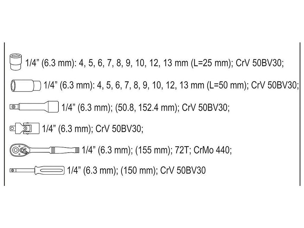 - Ráčna 1/4" s plastovou rukojetí, délka 155 mm, 72 zubů,