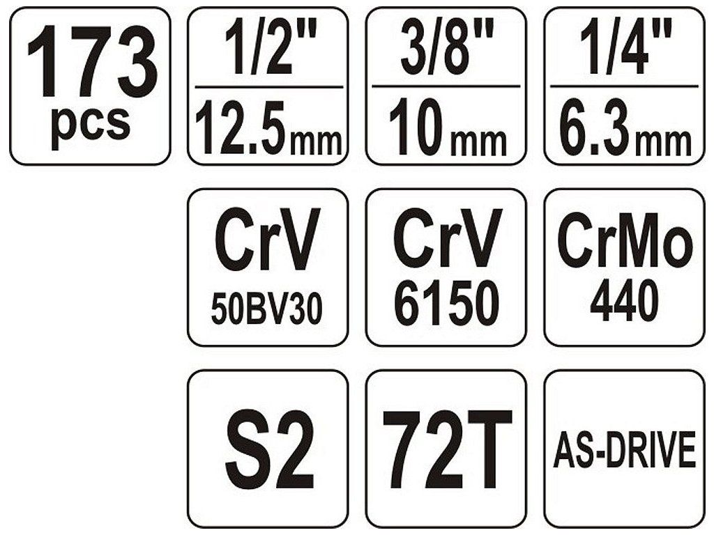 Gola sada 1/4", 3/8" a 1/2", 173 ks - YT-38931