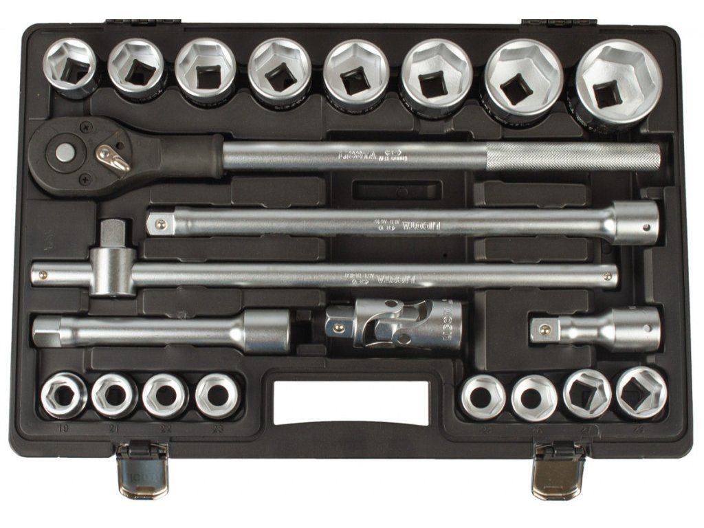 16 x nástrčný klíč: 19, 21, 22, 23, 24, 26, 27, 29, 30, 32, 35, 36, 38, 41, 46, 50 mm