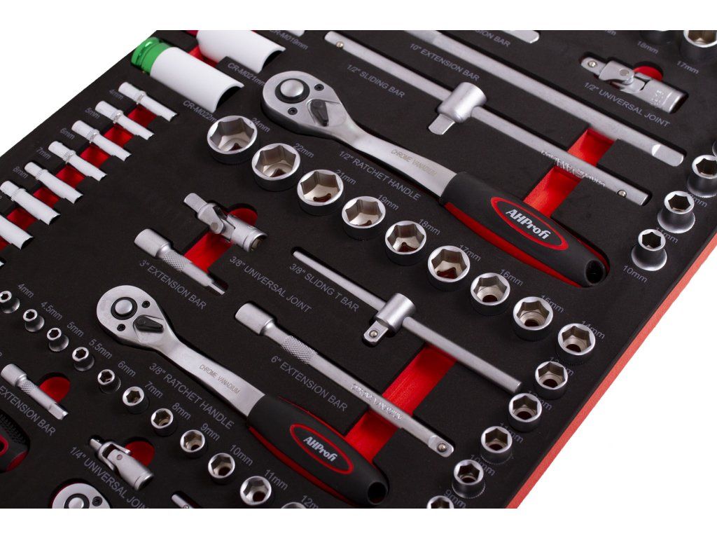 Gola sada v pěnové výplni do dílenského vozíku, 74 dílů - AH12399