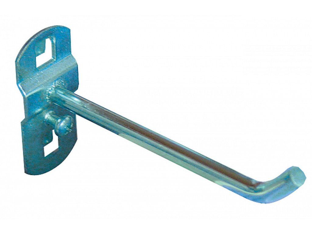 Hák se šikmým zakončením, kompatibilní s dílenskými závěsnými systémy, které využívají čtvercové děrování 10 mm2