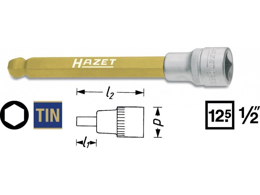 - Hlavice s bitem HEX 1/2" s kulovou hlavou 5 mm
