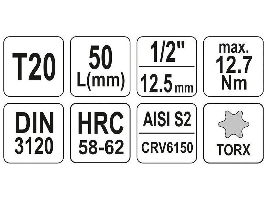 Hlavice s bitem TORX 1/2" T20 YATO - YT-04310